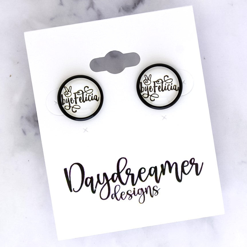 Shown are 12mm stud earrings. This is our most popular size for both adults and kids!