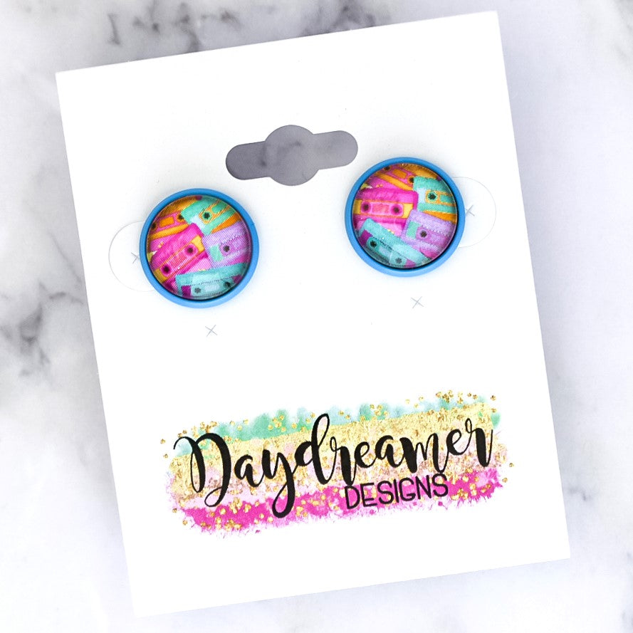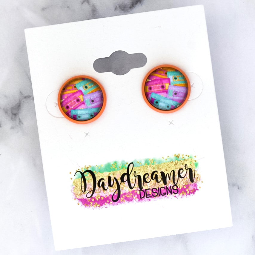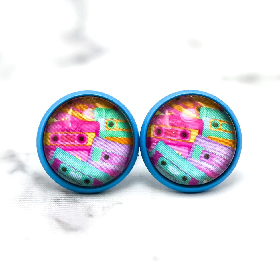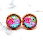 Shown are 12mm stud earrings. This is our most popular size for both adults and kids!