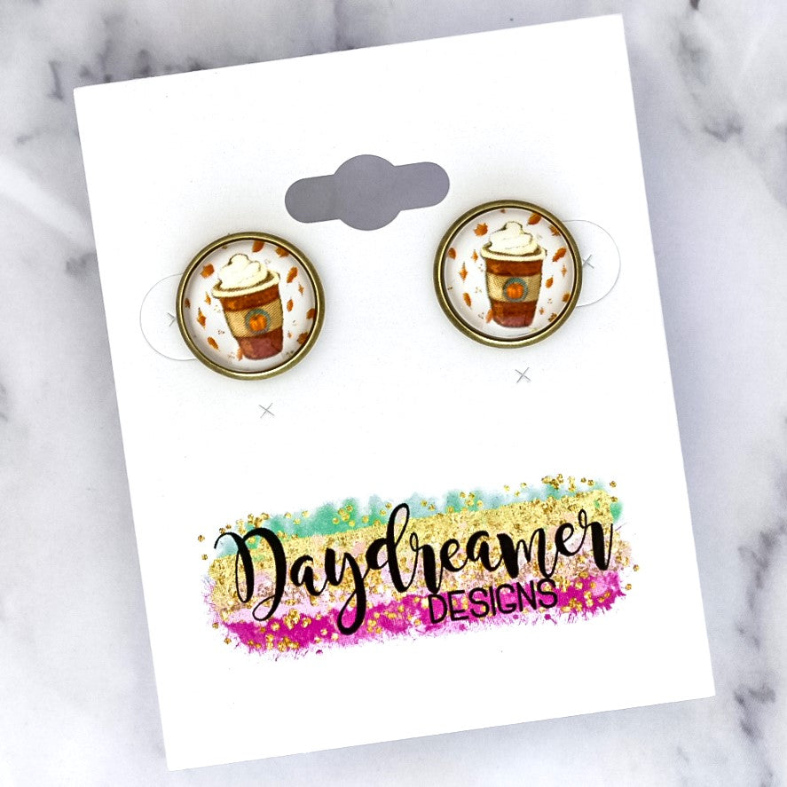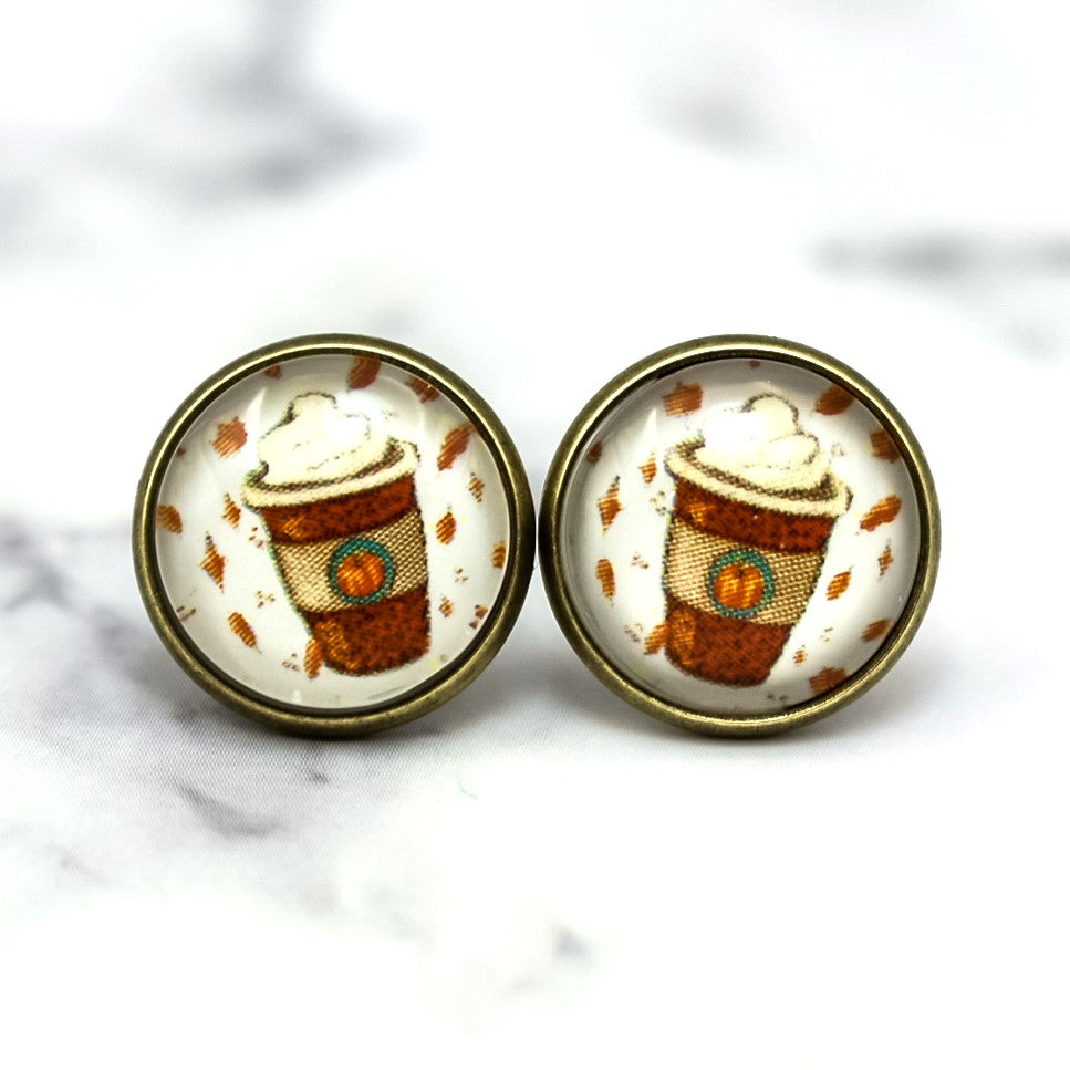 Fall Coffee Photo Stud Earrings