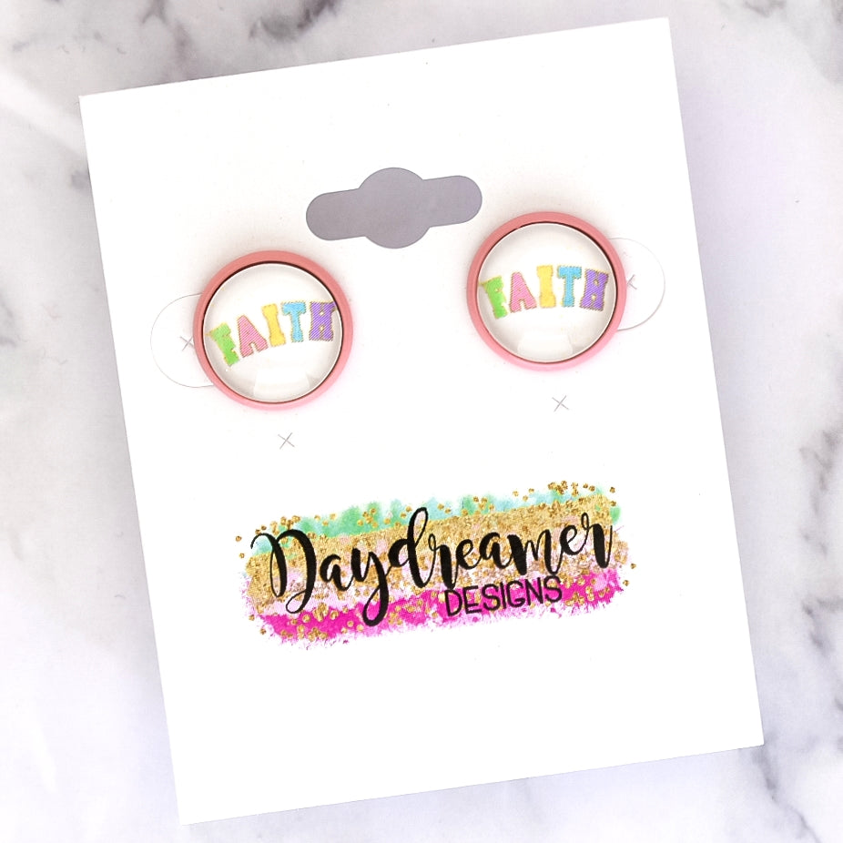 Shown are 12mm stud earrings. This is our most popular size for both adults and kids!