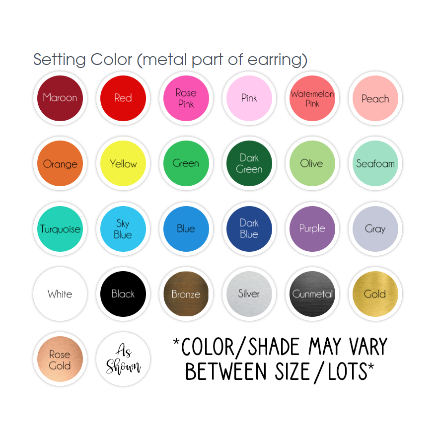 The setting refers to the metal part of the earring. Posts are centered on the backs of each earring. Settings are nickel and lead-free.