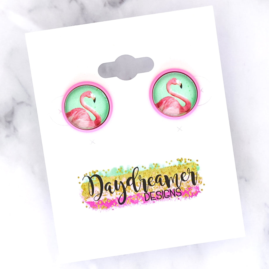 Shown are 12mm stud earrings. This is our most popular size for both adults and kids!