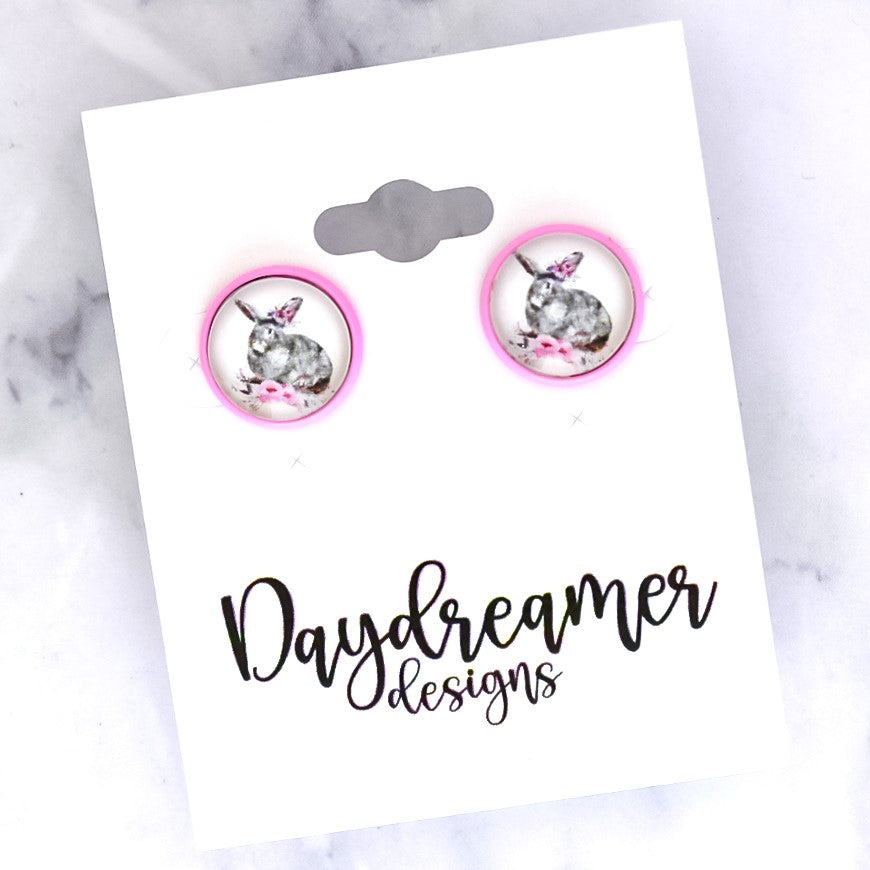 Shown are 12mm stud earrings. This is our most popular size for both adults and kids!