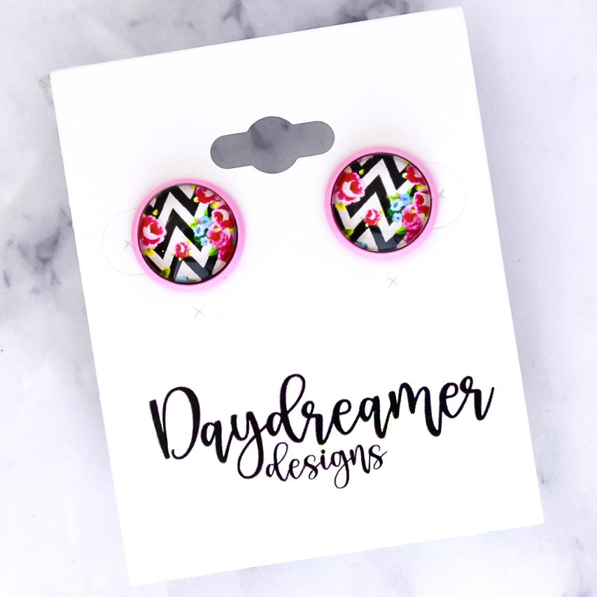 Shown are 12mm stud earrings. This is our most popular size for both adults and kids!