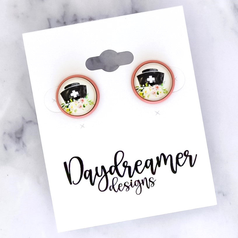 Shown are 12mm stud earrings. This is our most popular size for both adults and kids!