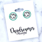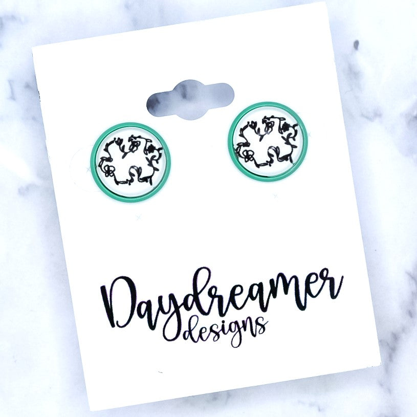 Shown are 12mm stud earrings. This is our most popular size for both adults and kids!