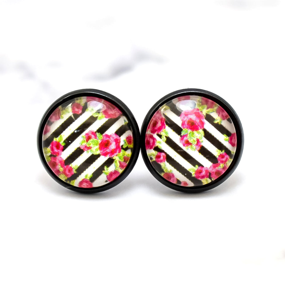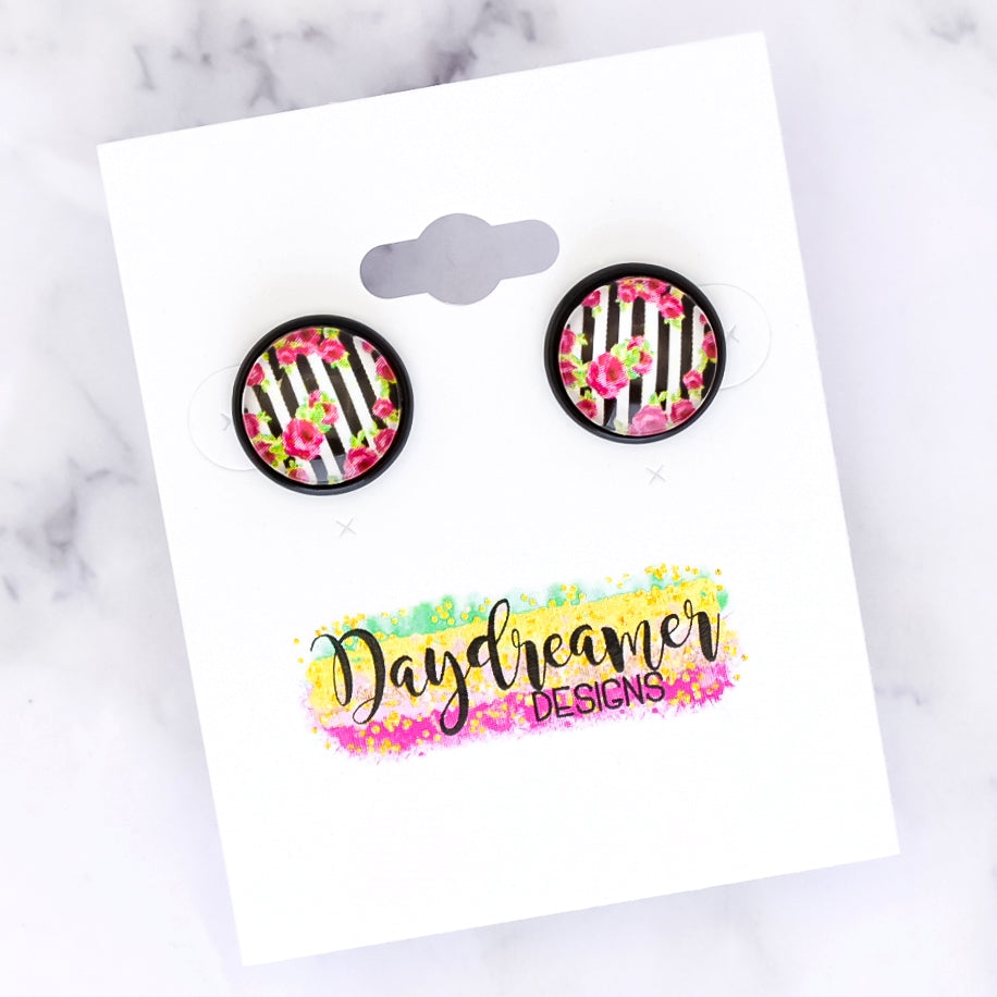 Shown are 12mm stud earrings. This is our most popular size for both adults and kids!