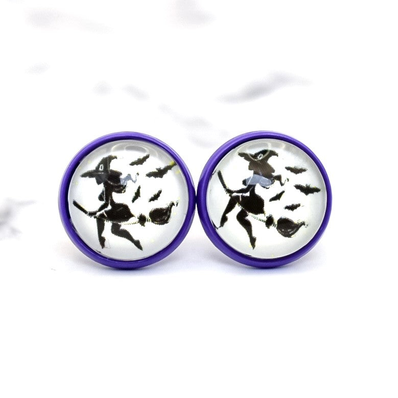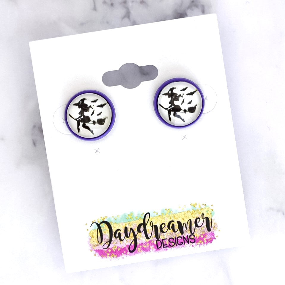 Flying Witch Photo Stud Earrings