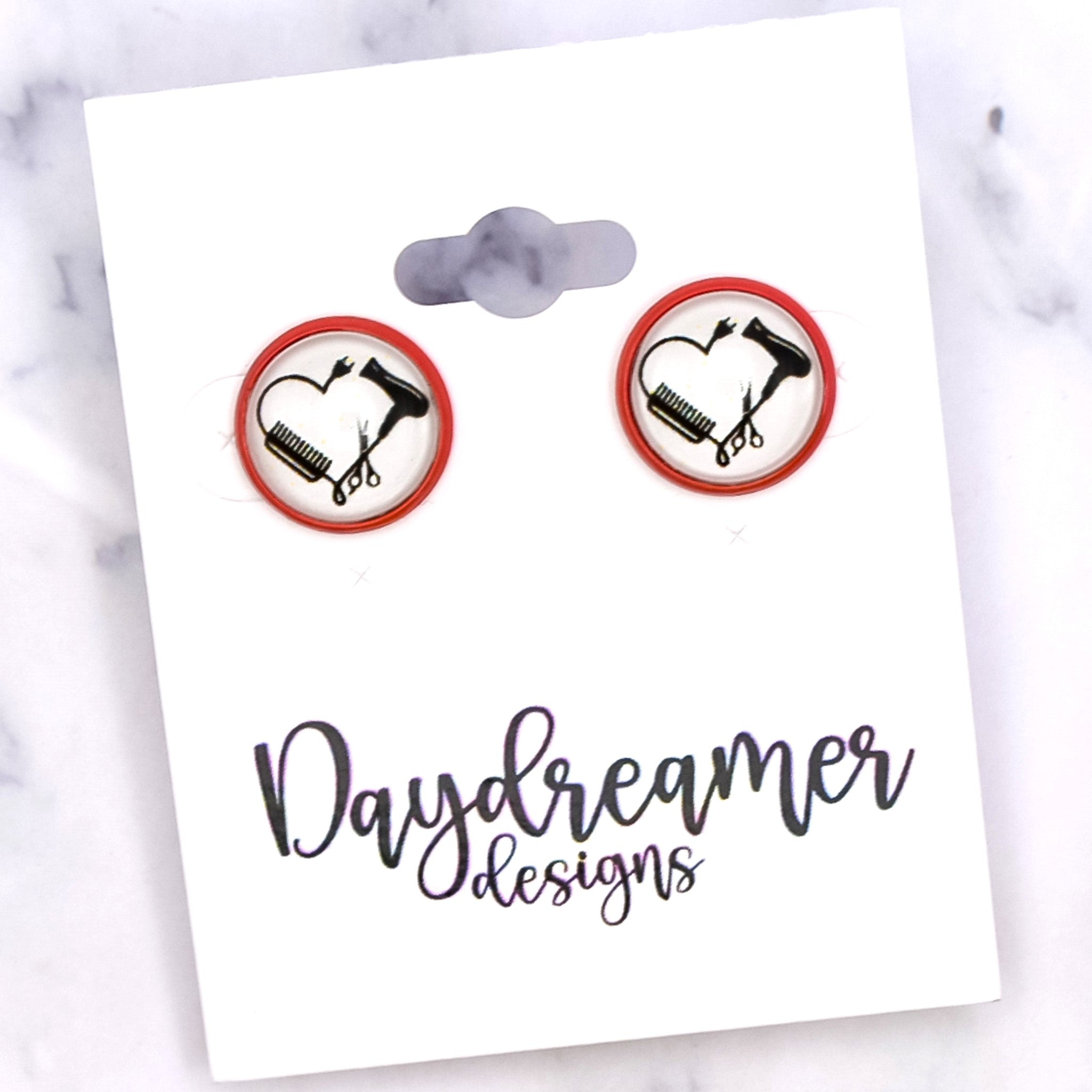Shown are 12mm stud earrings. This is our most popular size for both adults and kids!