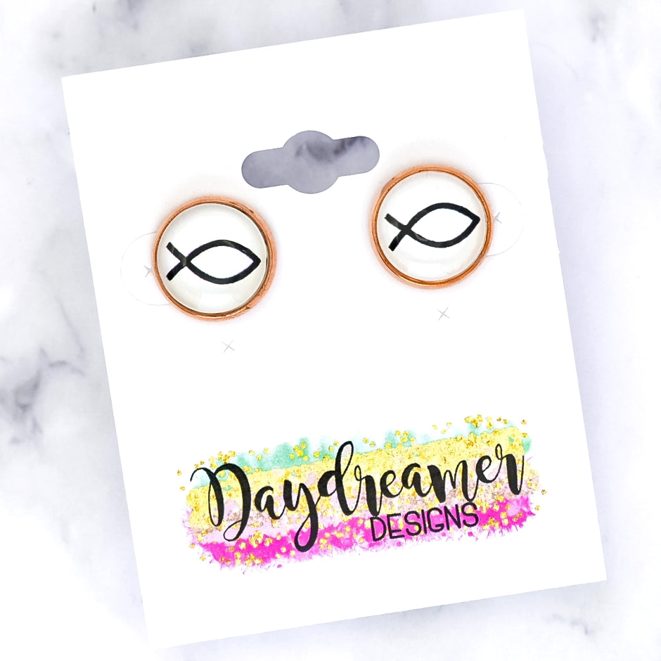 Shown are 12mm stud earrings. This is our most popular size for both adults and kids!