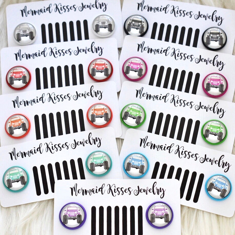 Shown are 12mm stud earrings. This is our most popular size for both adults and kids!