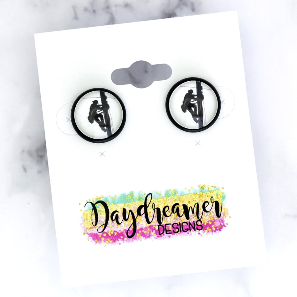 Shown are 12mm stud earrings. This is our most popular size for both adults and kids!