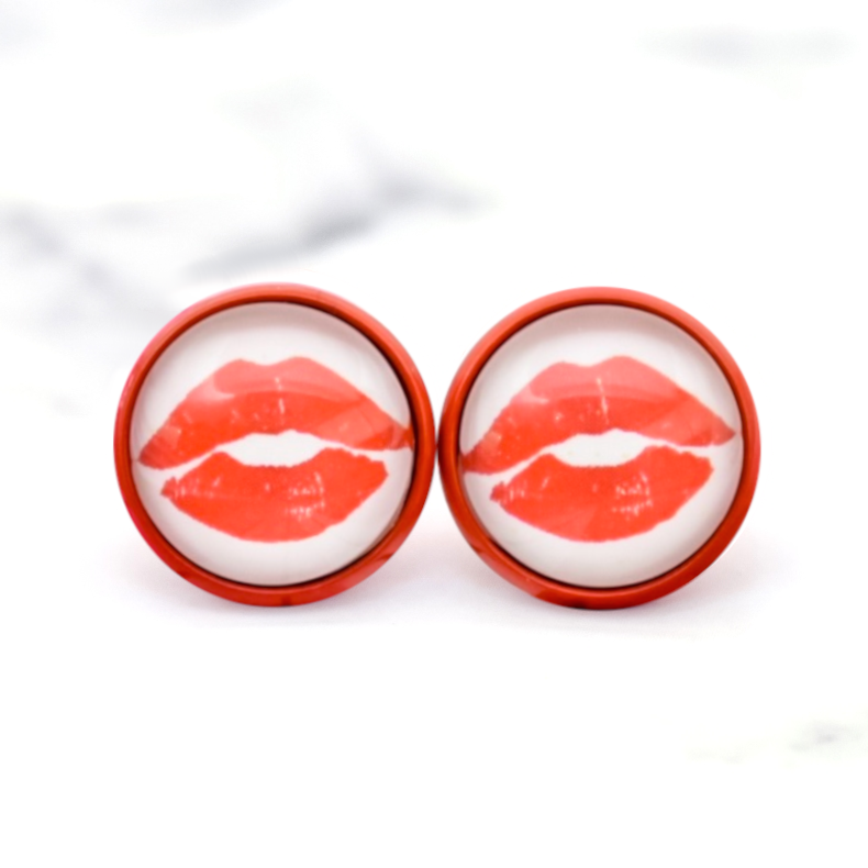 Red Lips Photo Stud Earrings