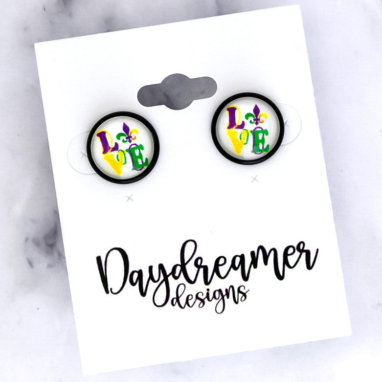 Shown are 12mm stud earrings. This is our most popular size for both adults and kids!