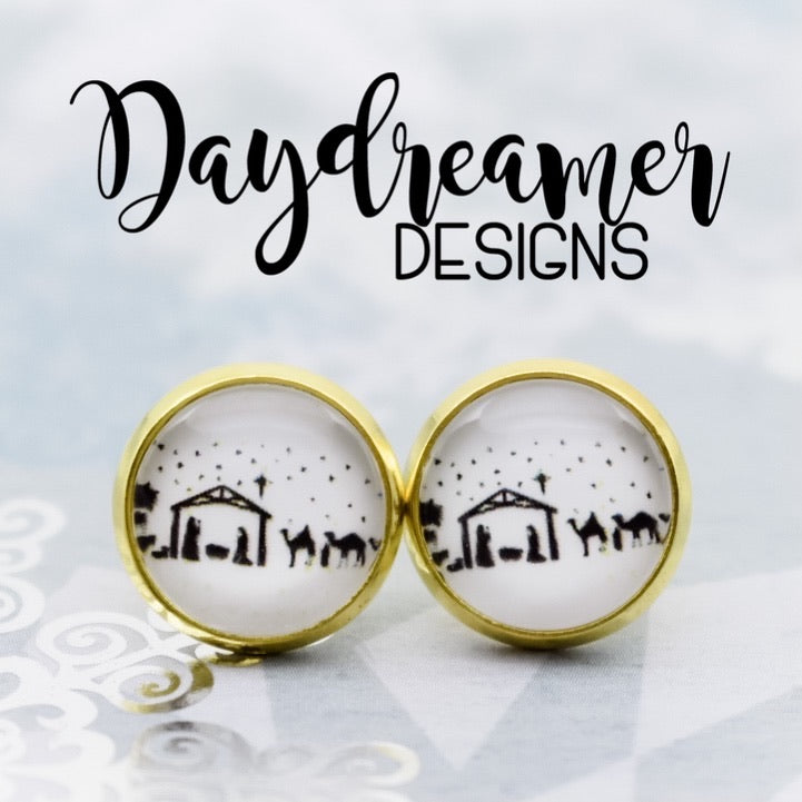 Full Nativity Scene Photo Stud Earrings