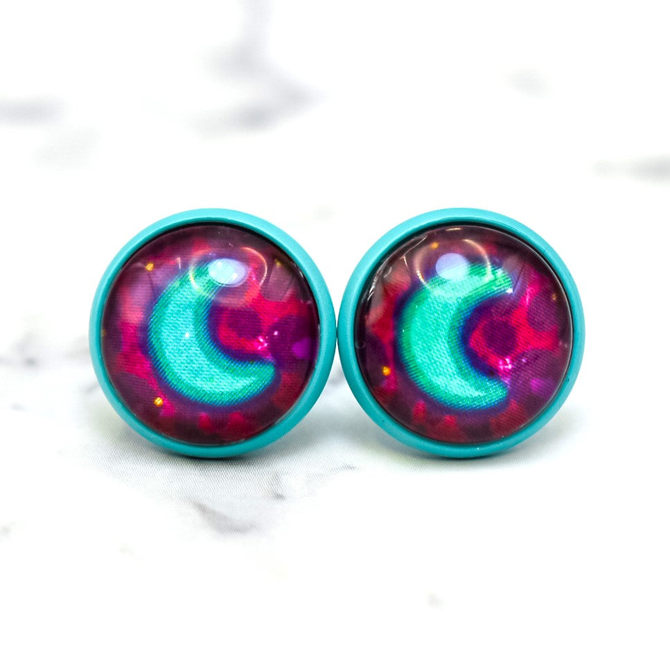 Shown are 12mm stud earrings. This is our most popular size for both adults and kids!