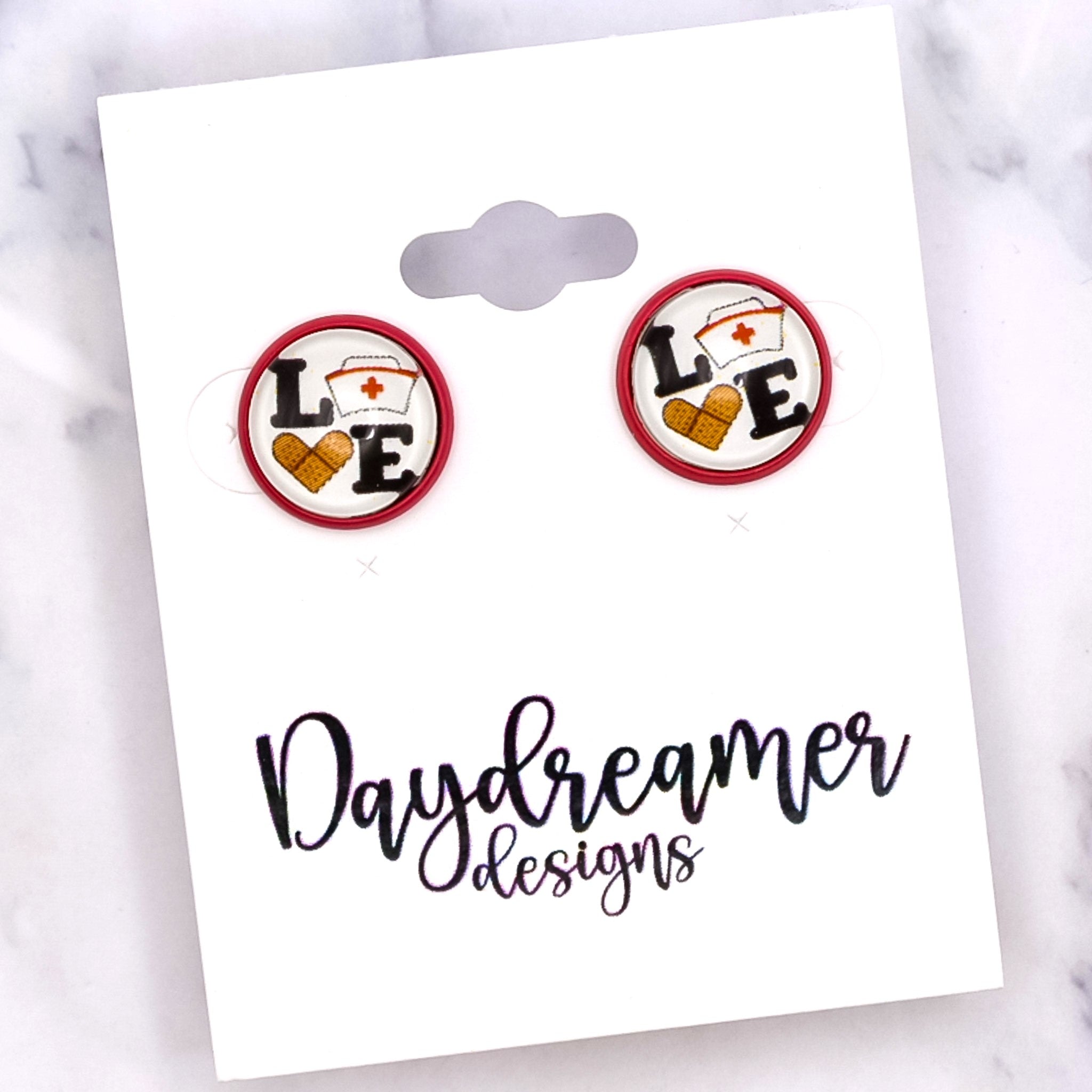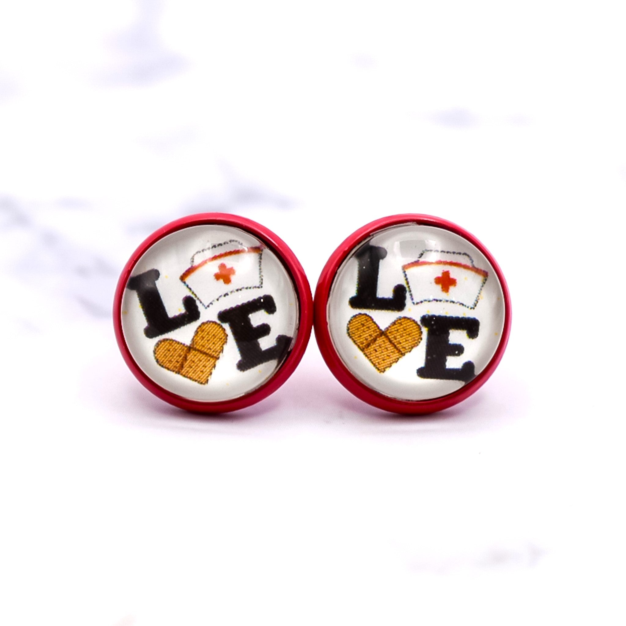 Shown are 12mm stud earrings. This is our most popular size for both adults and kids!