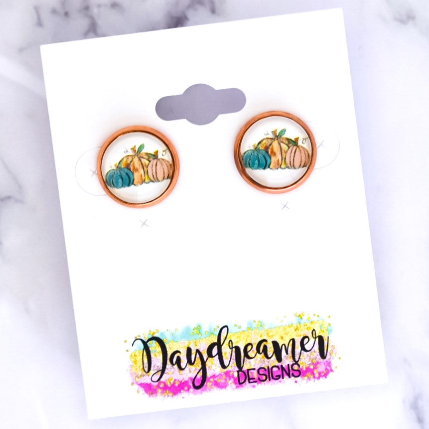 Shown are 12mm stud earrings. This is our most popular size for both adults and kids!