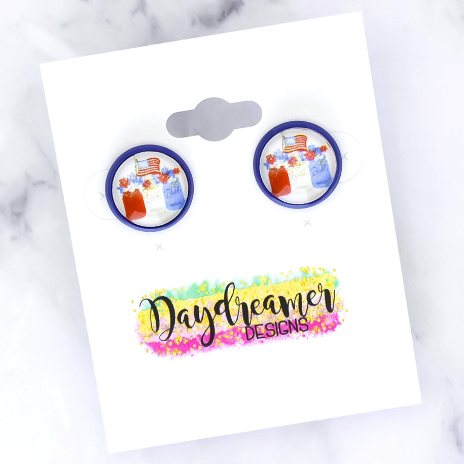 American Mason Jars Photo Stud Earrings
