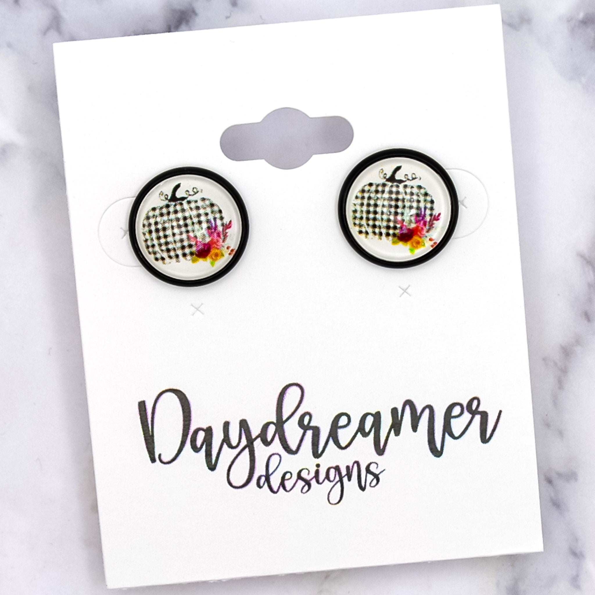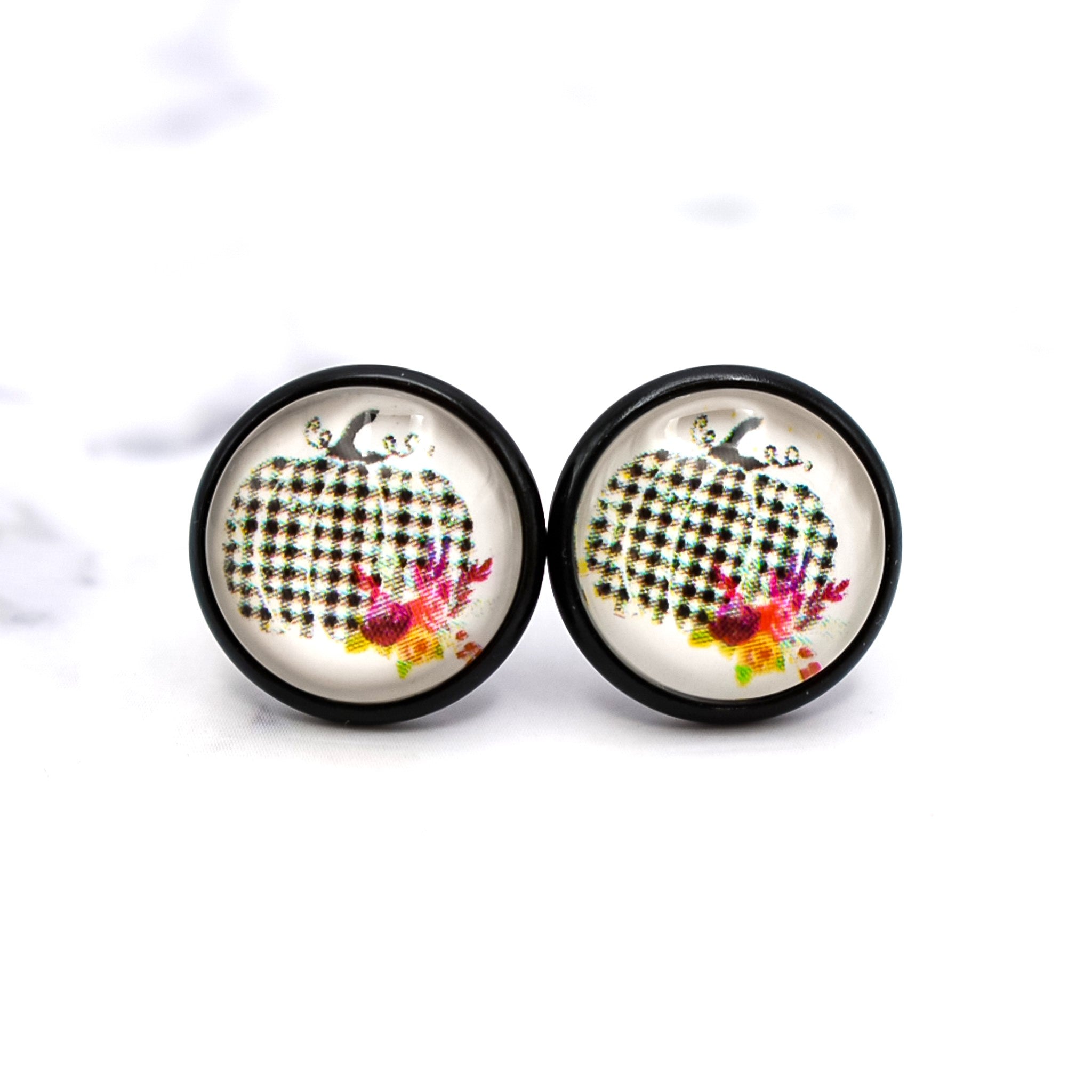 Plaid Pumpkin Photo Stud Earrings