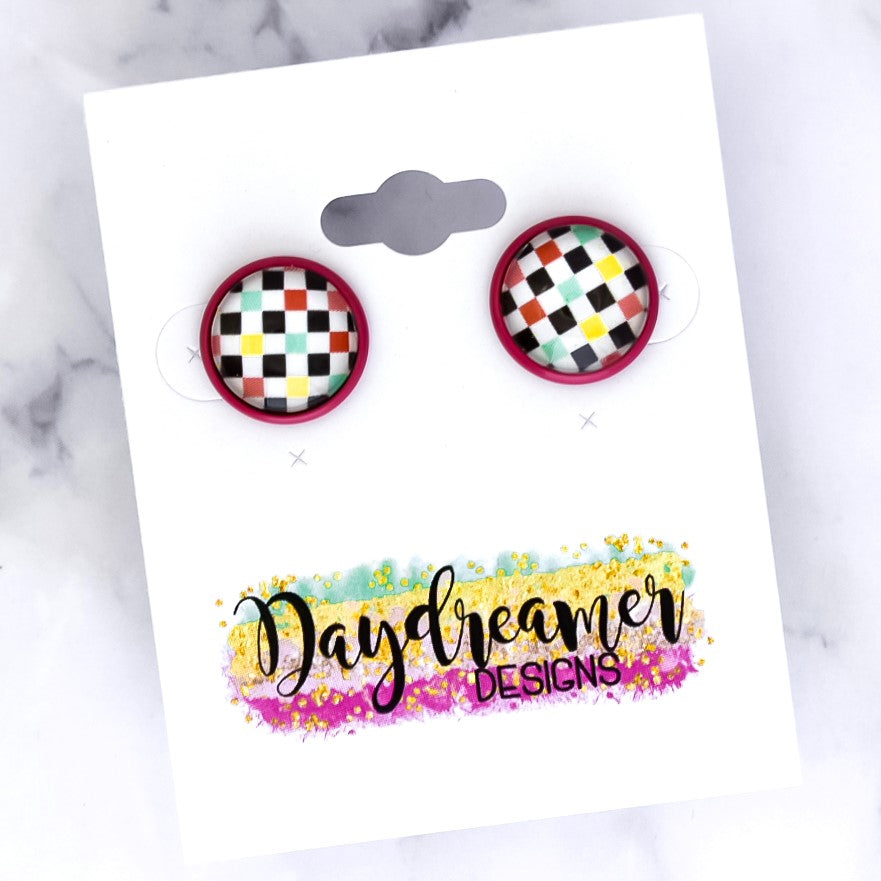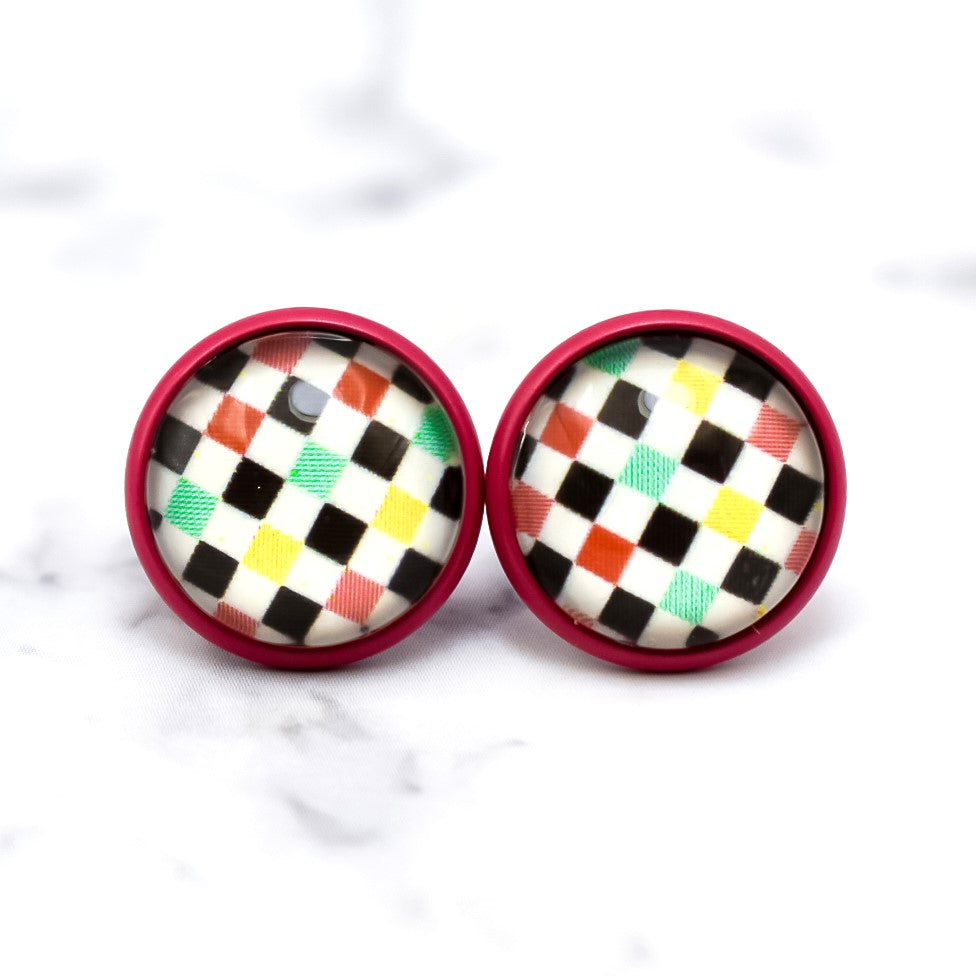 Shown are 12mm stud earrings. This is our most popular size for both adults and kids!