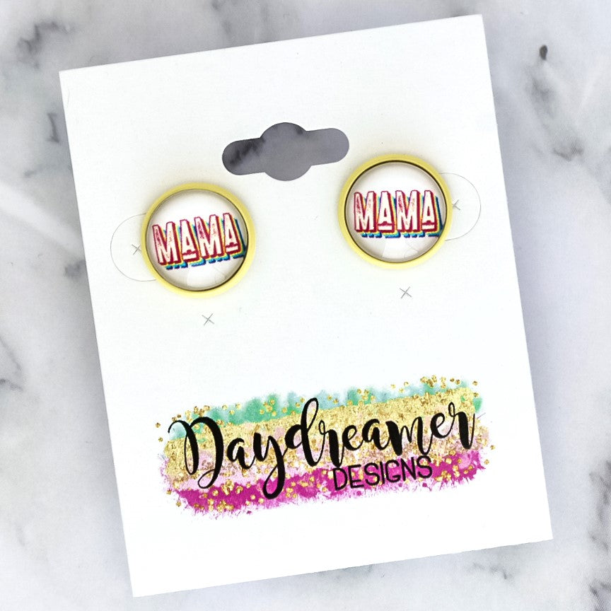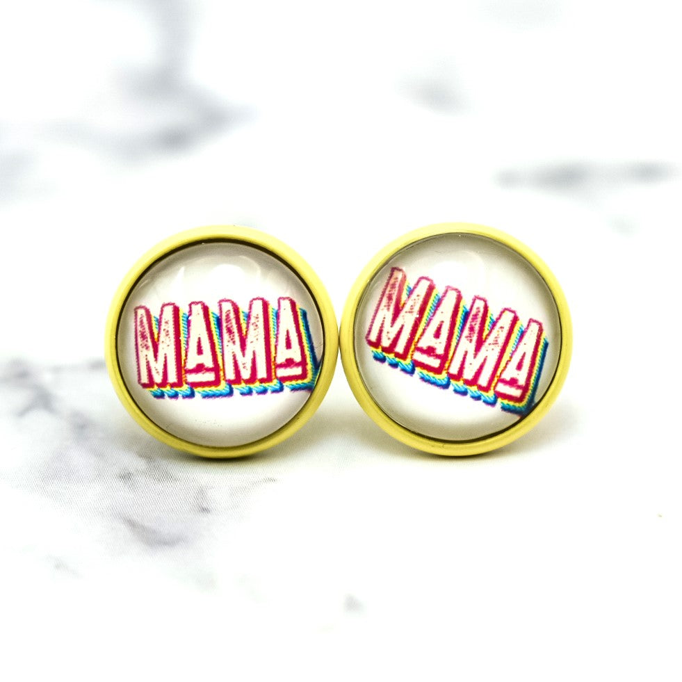 Shown are 12mm stud earrings. This is our most popular size for both adults and kids!