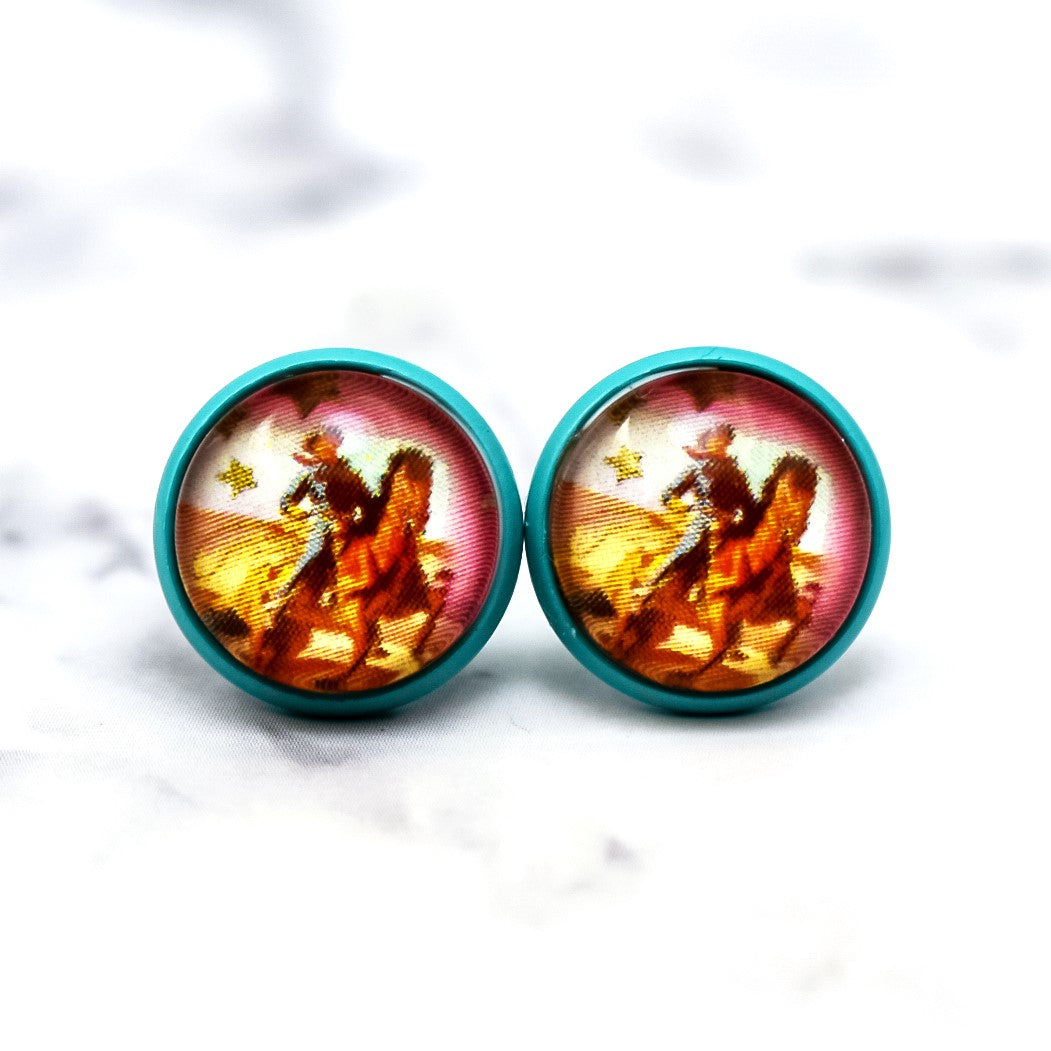 Shown are 12mm stud earrings. This is our most popular size for both adults and kids!