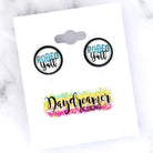 Shown are 12mm stud earrings. This is our most popular size for both adults and kids!