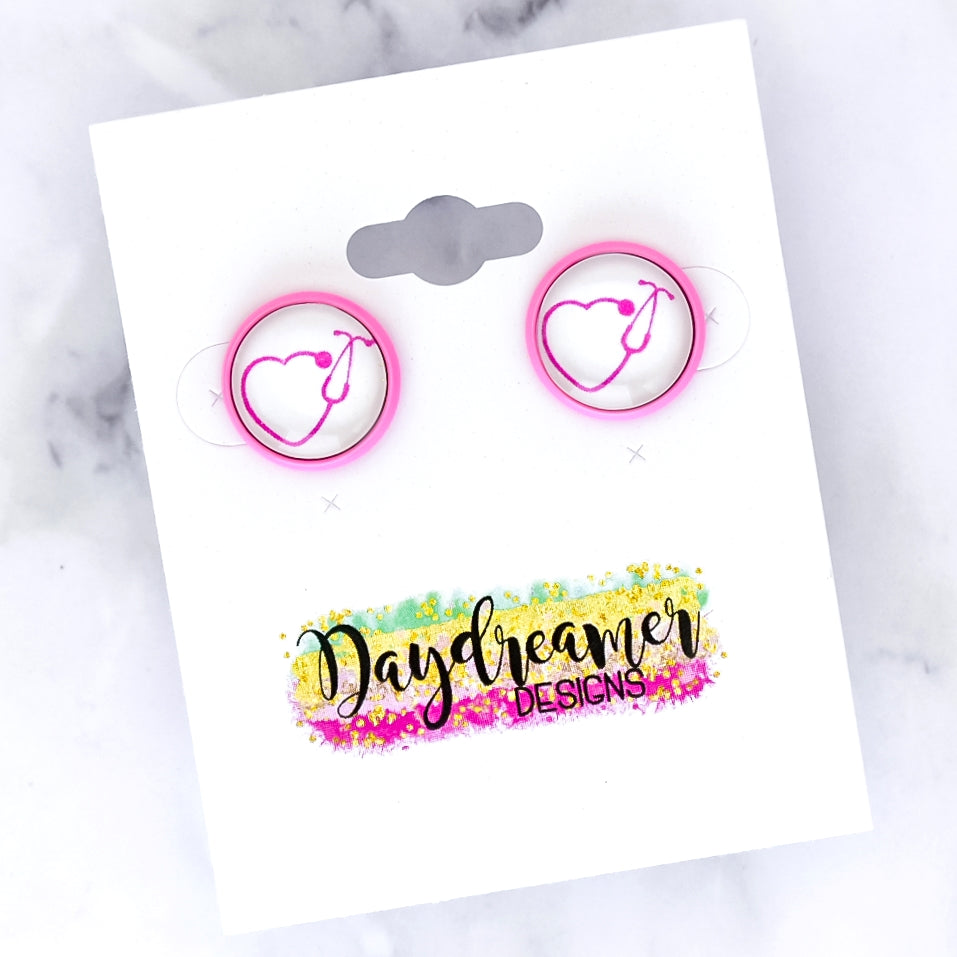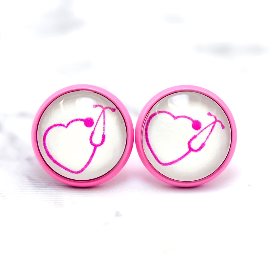 Shown are 12mm stud earrings. This is our most popular size for both adults and kids!