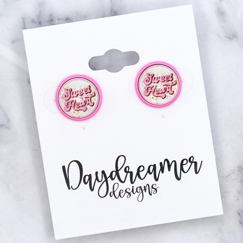 Shown are 12mm stud earrings. This is our most popular size for both adults and kids!