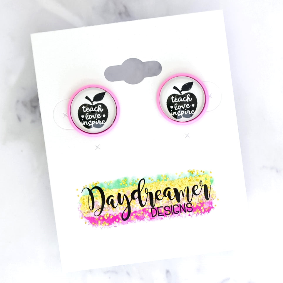 Shown are 12mm stud earrings. This is our most popular size for both adults and kids!