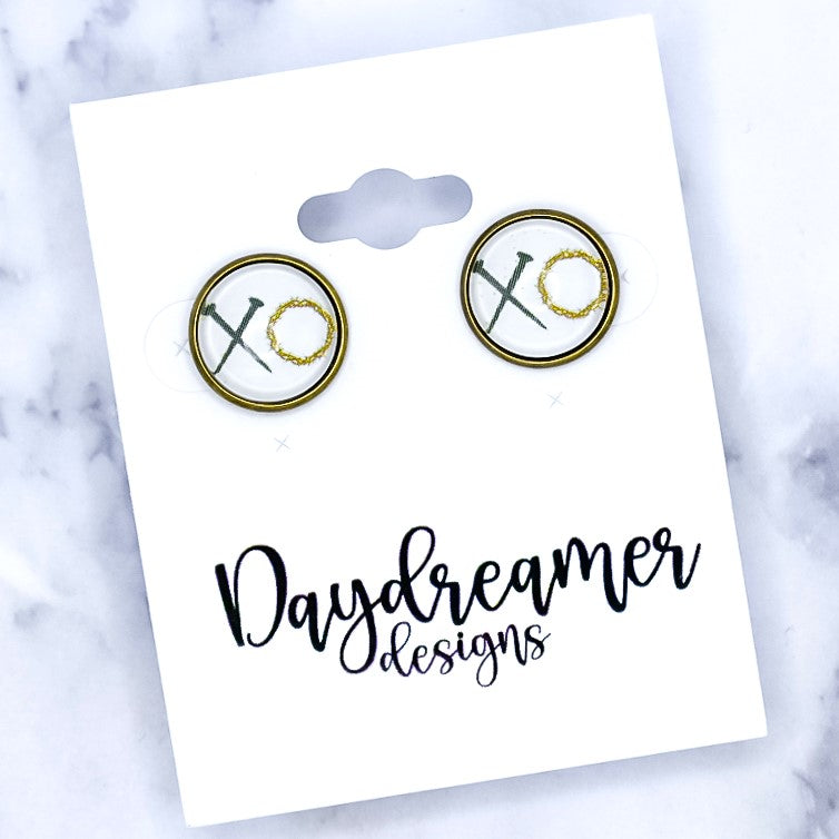 Shown are 12mm stud earrings. This is our most popular size for both adults and kids!