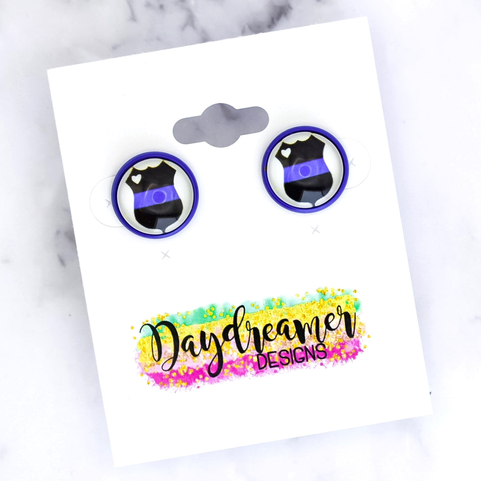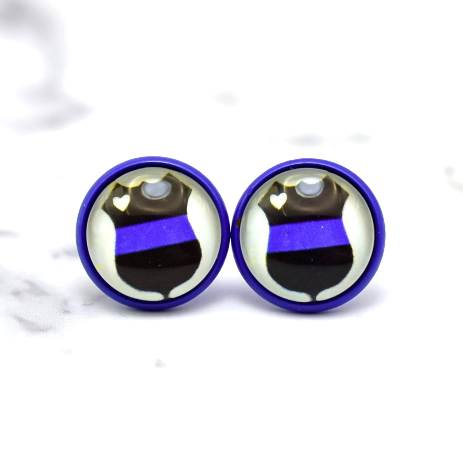 Thin Blue Line Badge Photo Stud Earrings