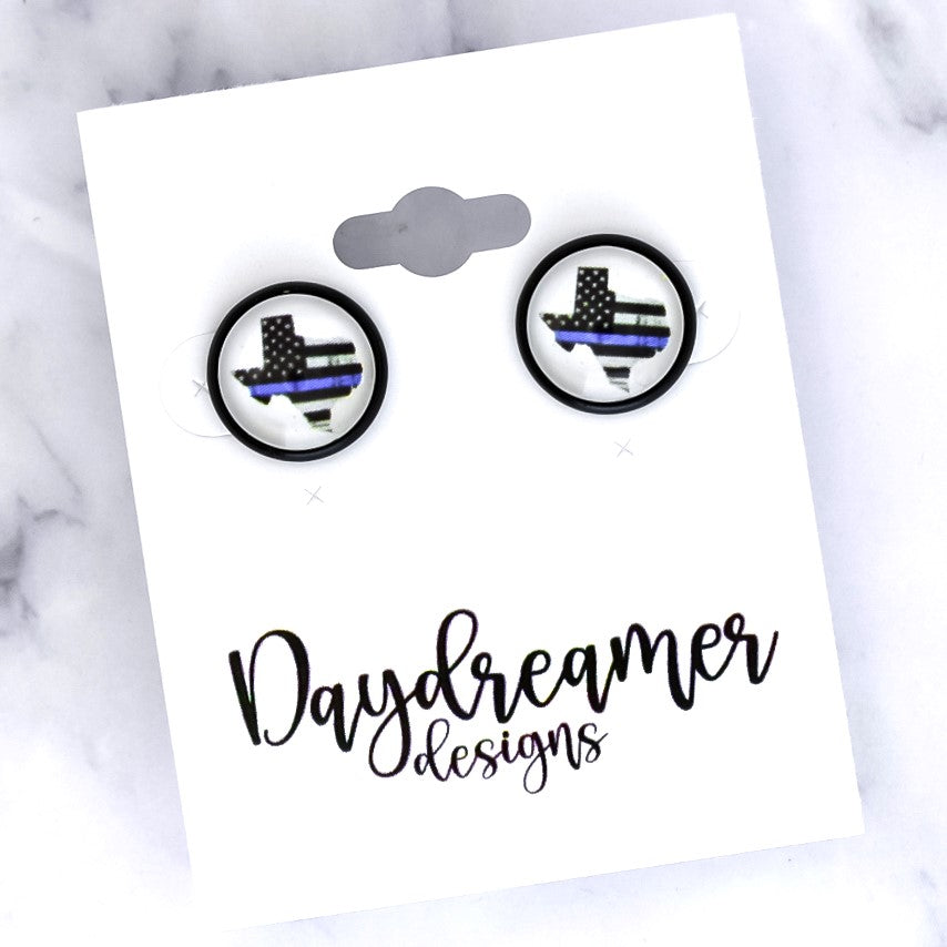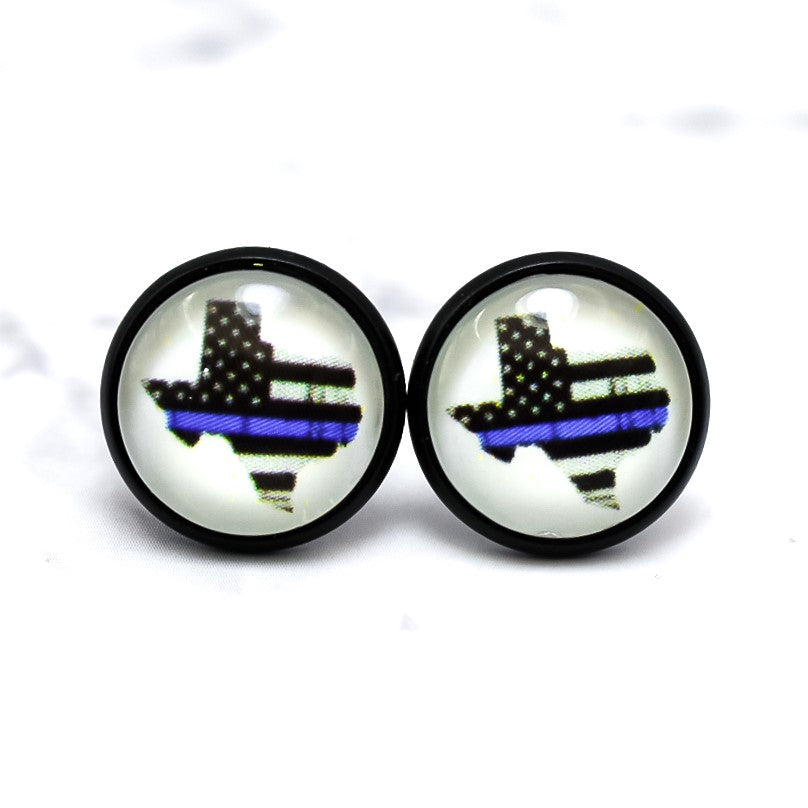 Thin Blue Line Texas Photo Stud Earrings