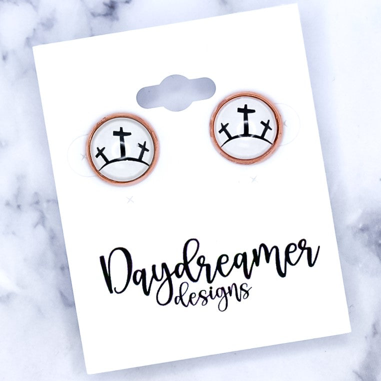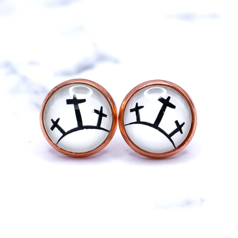 Shown are 12mm stud earrings. This is our most popular size for both adults and kids!