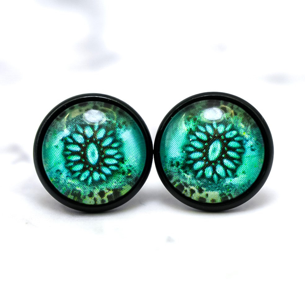 Shown are 12mm stud earrings. This is our most popular size for both adults and kids!