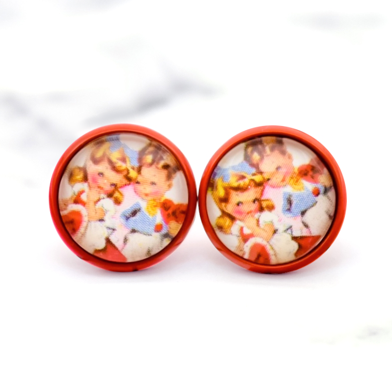 Shown are 12mm stud earrings. This is our most popular size for both adults and kids!