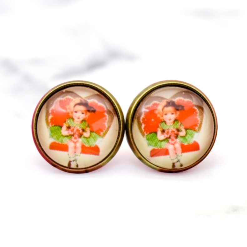 Vintage Valentine Girl Photo Stud Earrings