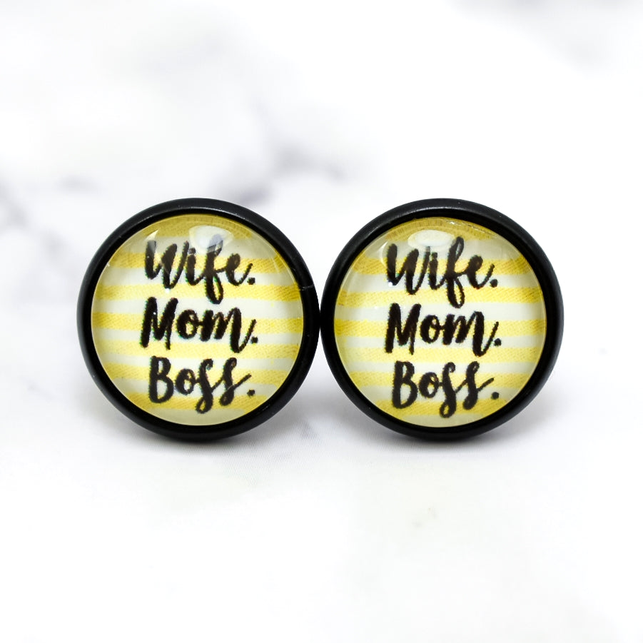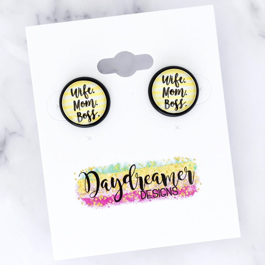 Shown are 12mm stud earrings. This is our most popular size for both adults and kids!