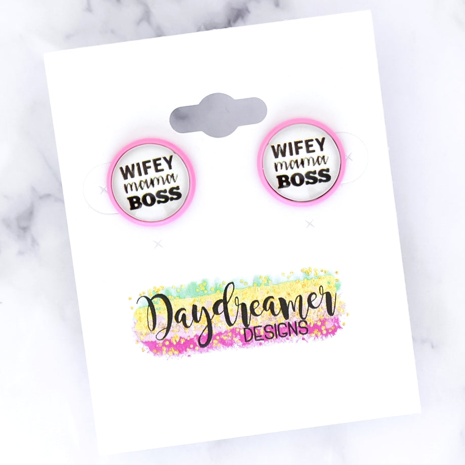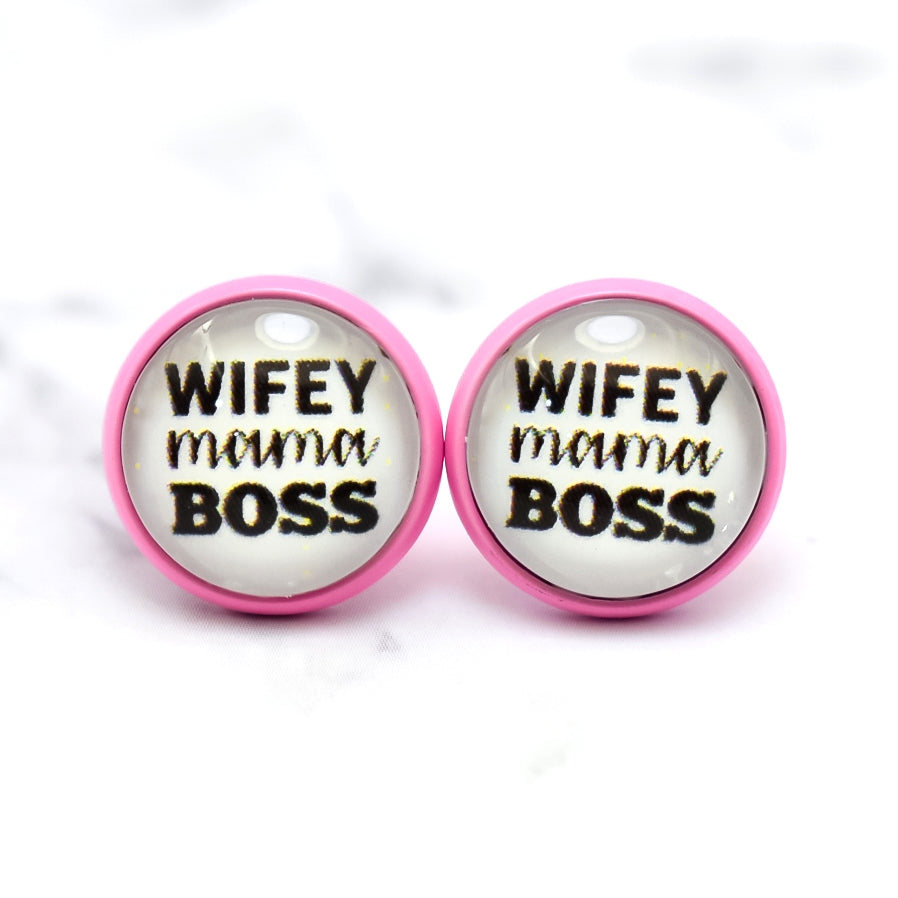 Wifey Mama Boss Photo Stud Earrings