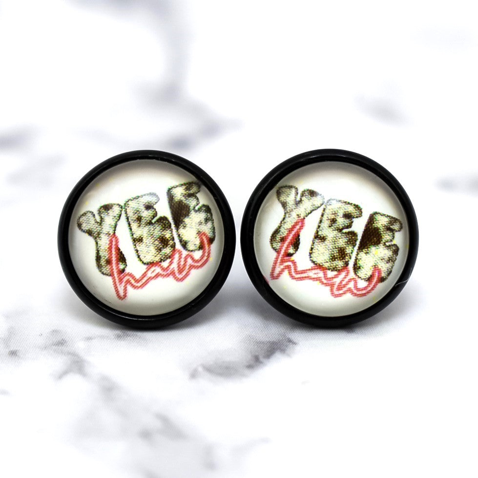 Shown are 12mm stud earrings. This is our most popular size for both adults and kids!