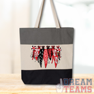 Made from high-quality, durable canvas, which makes them perfect for carrying your essentials. The print is one-sided. 20" handles with a 8" drop. Tote Size: 15"W x 15"H x 3"D.