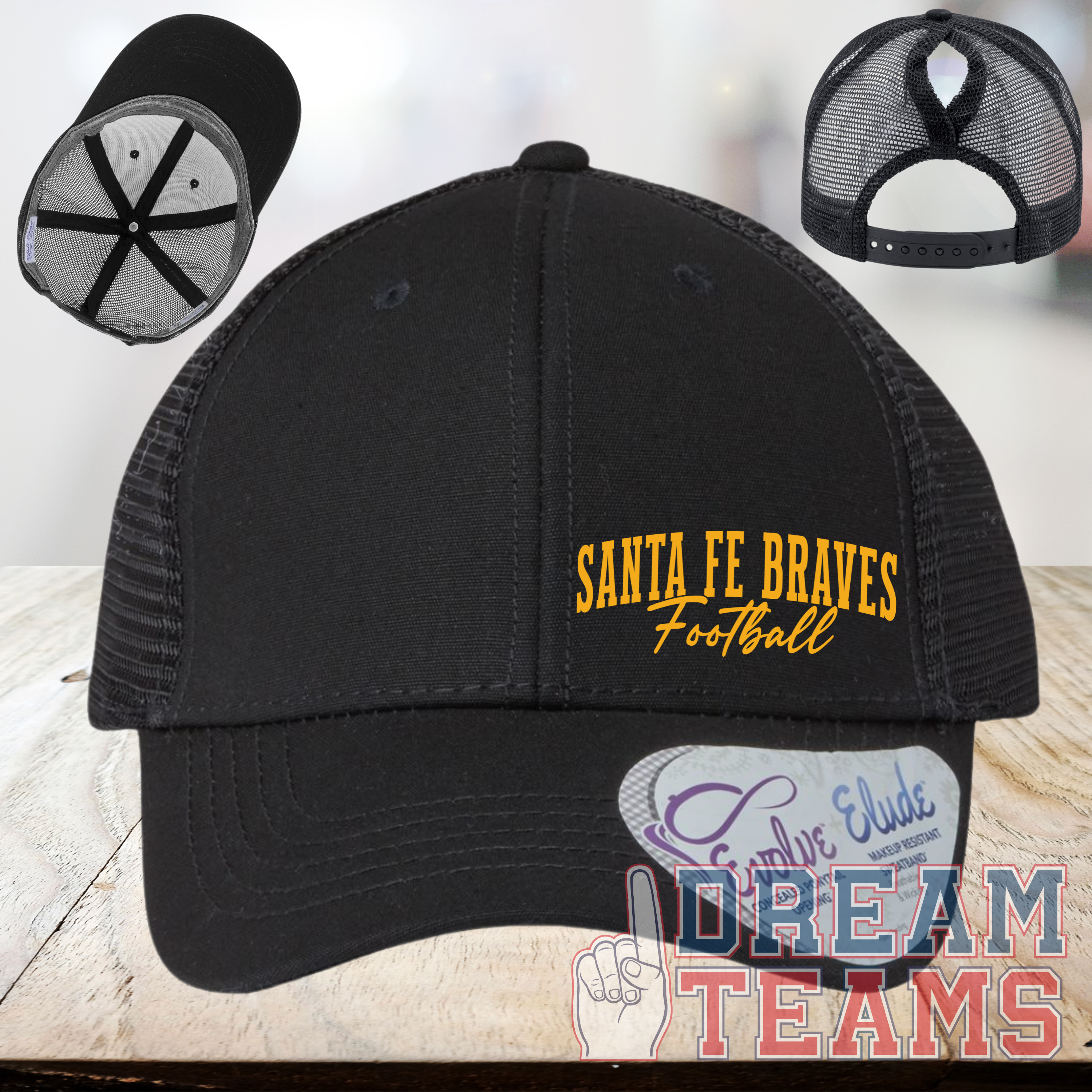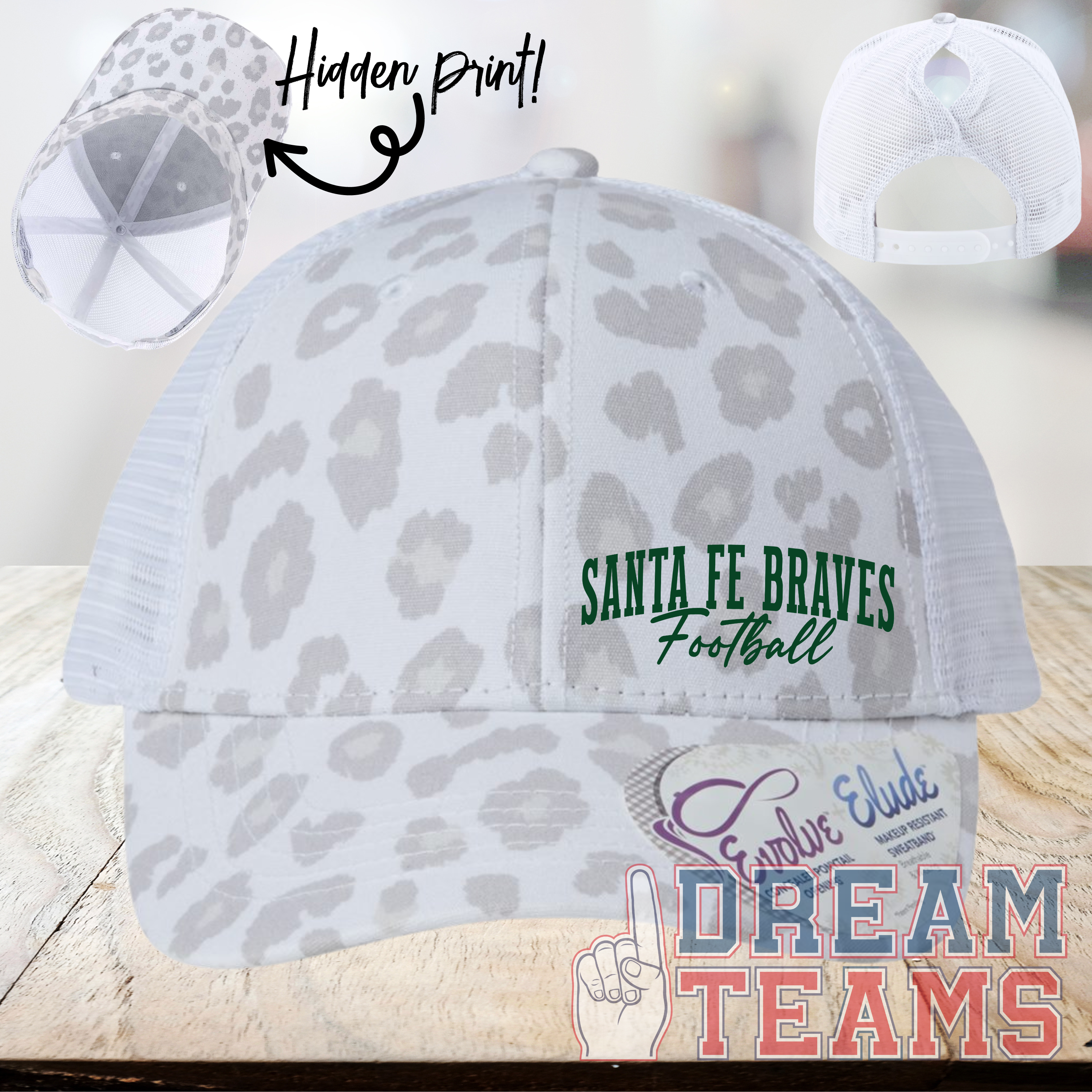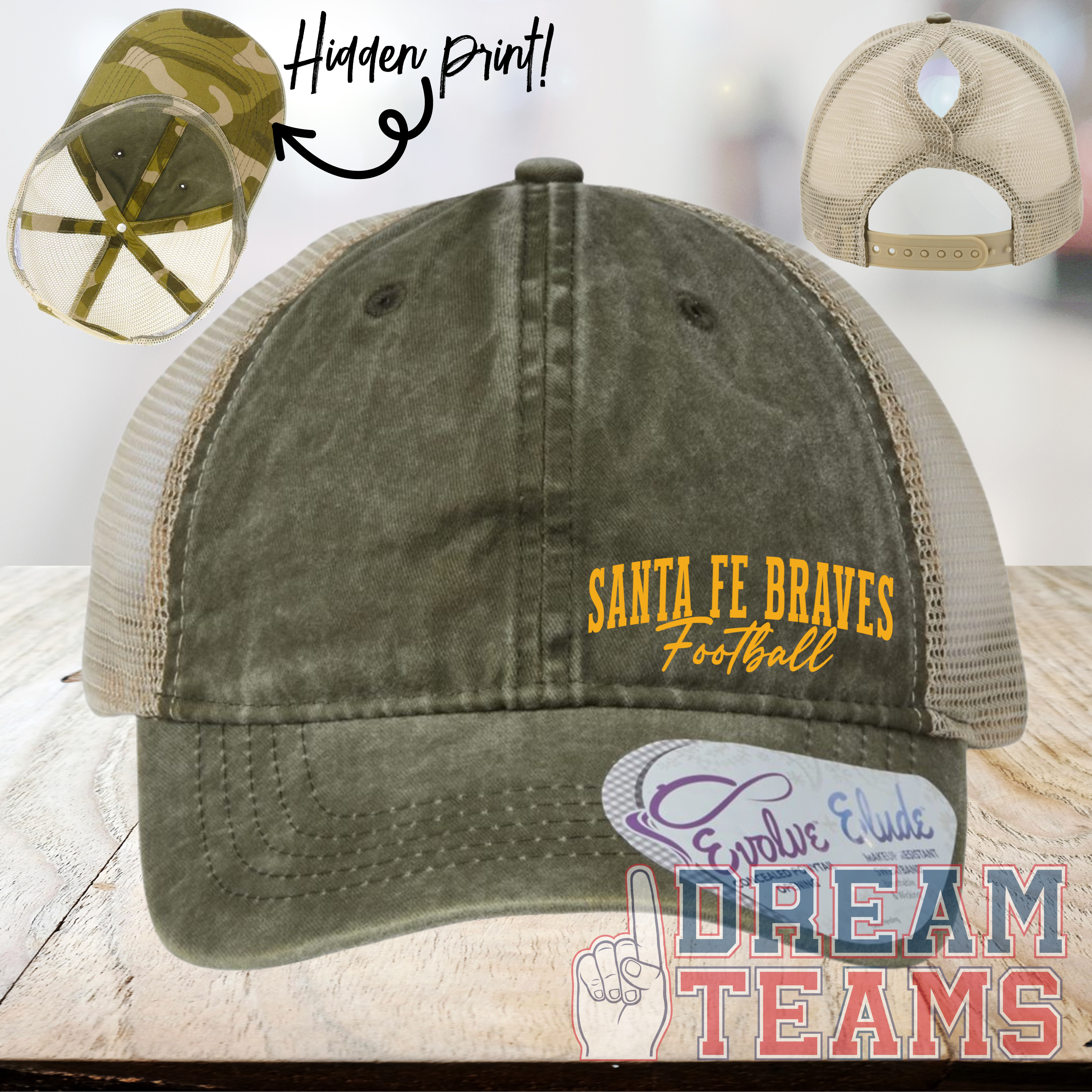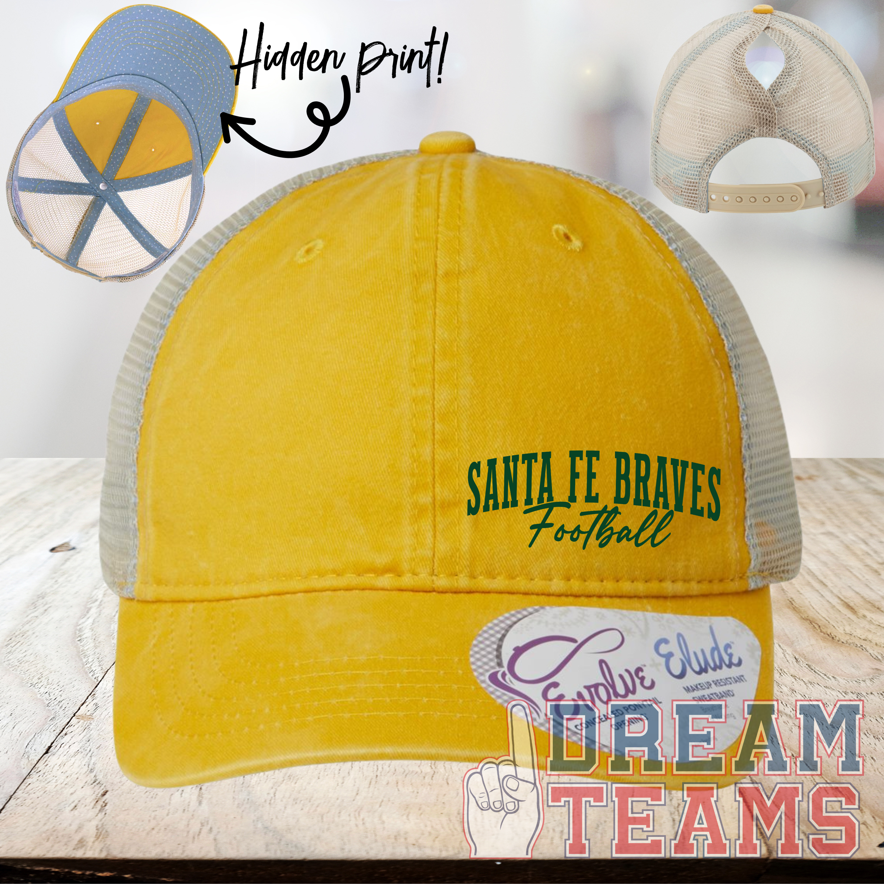 Hat brands and color shades may vary depending on availability. Unisex sized. This hat features a mesh back and an adjustable snapback closure ensures a secure fit. This design also features a concealed ponytail opening and an adorable printed underside!