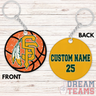 INCLUDE CUSTOM INFO IN THE NOTES BOX. Show off your team pride everywhere you go! These custom, two-sided keychains measure 2″ across and are perfect for keys, backpacks, or gear bags.
