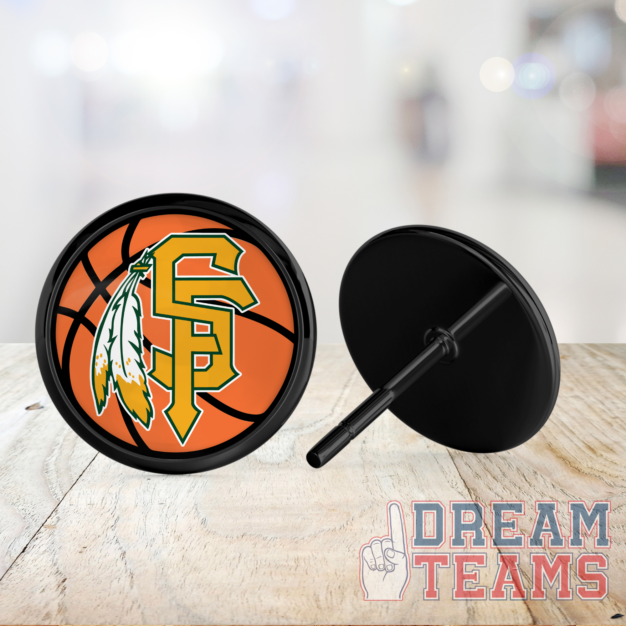 Santa Fe Indians Boys Basketball - Ball Logo - Stud Earrings*