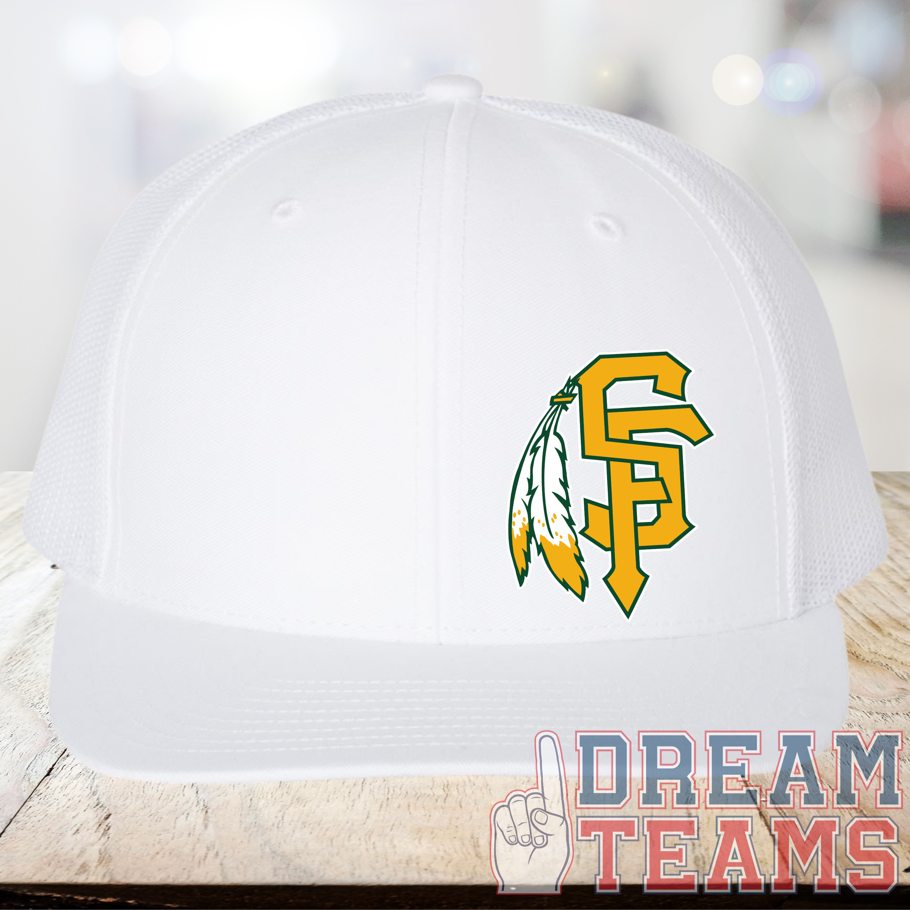 Hat brands and color shades may vary depending on availability. This hat is Unisex-sized and features a mesh back and an adjustable snapback closure.