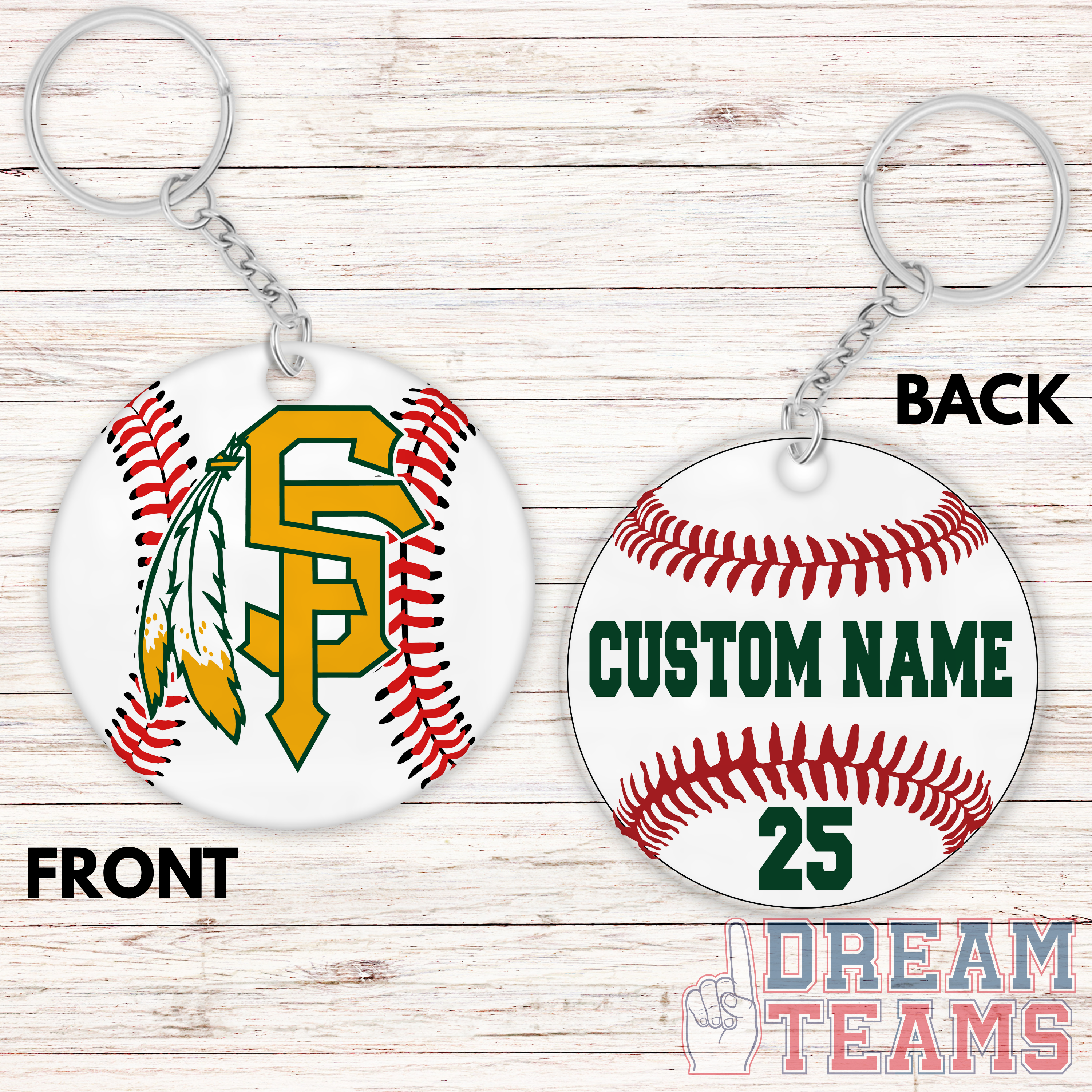 Show off your team pride everywhere you go! These custom, two-sided keychains measure 2″ across and are perfect for keys, backpacks, or gear bags.