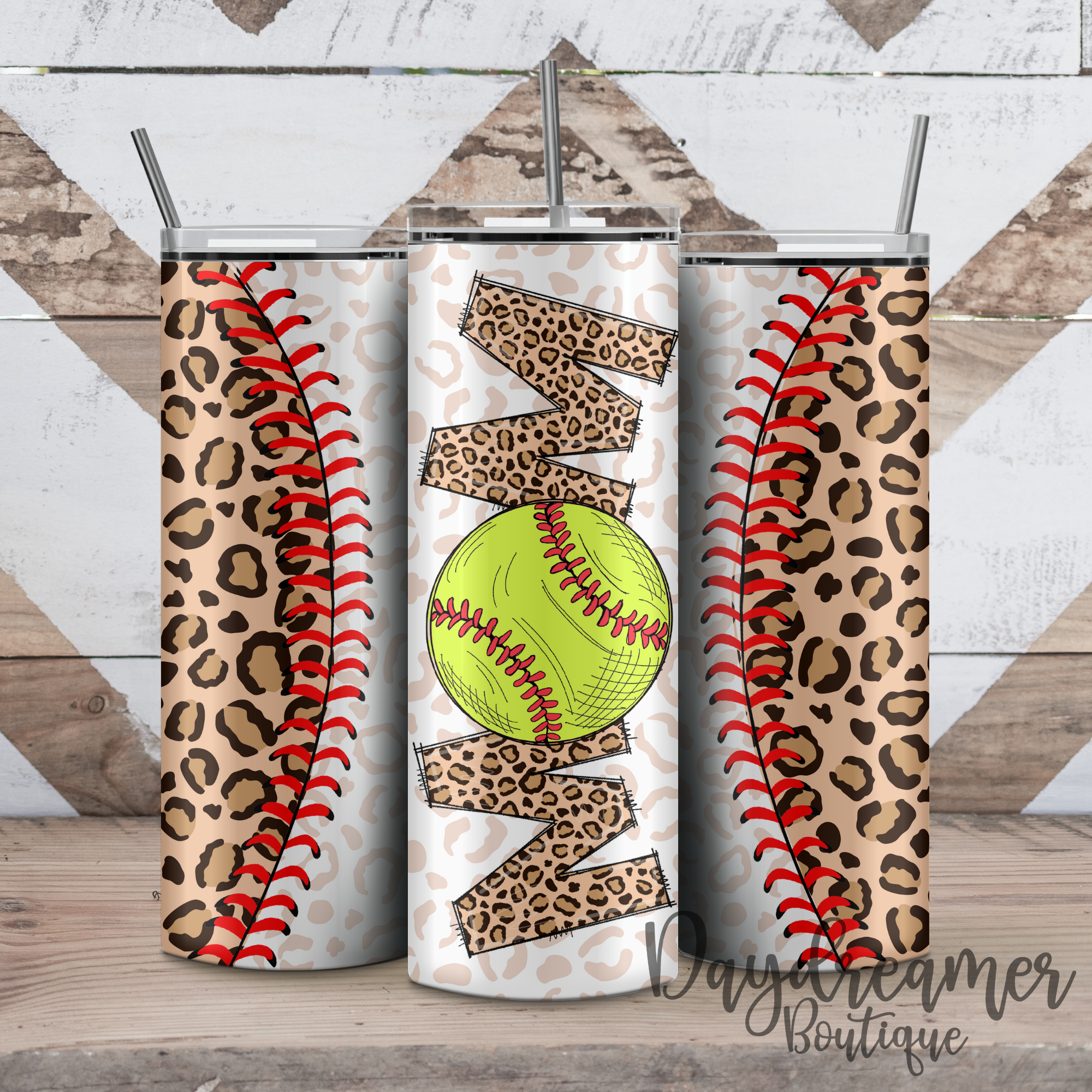 Leopard Softball Mom Tumbler