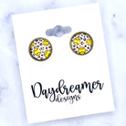 Shown are 12mm stud earrings. This is our most popular size for both adults and kids!