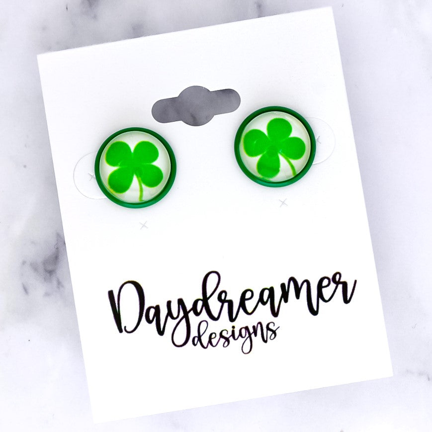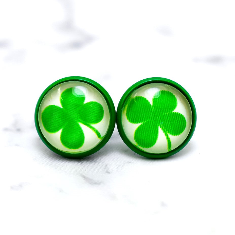 Shown are 12mm stud earrings. This is our most popular size for both adults and kids!